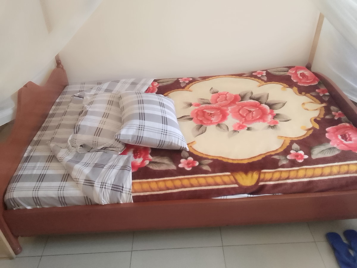 The apartment is situated in a nice, safe and quiet neighborhood of Musanze, 15 min walk from down town in a parallel to the main road Kigali-Rubavu. The apartment shares the gate and parking with a main building which is well fenced to guaranty the privacy of both units. - An open space 3m x 6 m (9,85 feet x 19,70 feet); double bed (140 cm x 190 cm / 55 in x 75 in) and kitchenette - A bathroom - front porch - private dry garden - One reserved car space in the parking - free internet