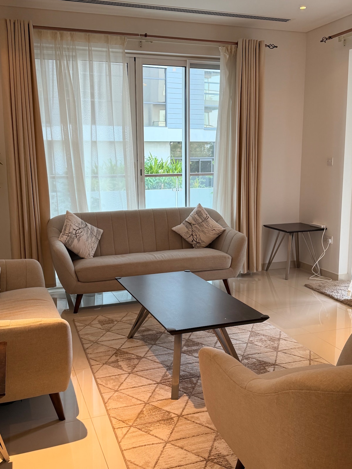 Modern, cozy apartment in central Muscat- close to main attractions & easy city access. Features a smart TV, high speed Wi-Fi, fully equipped kitchen & comfortable furnishings. Perfect for travellers seeking comfort & convenience in the heart of Muscat. Building has a roof top pool , private cinema as well as 24/7 security with private parking on site. Nearest supermarket is a 7 minute walk away with the beach 1.2 km away.