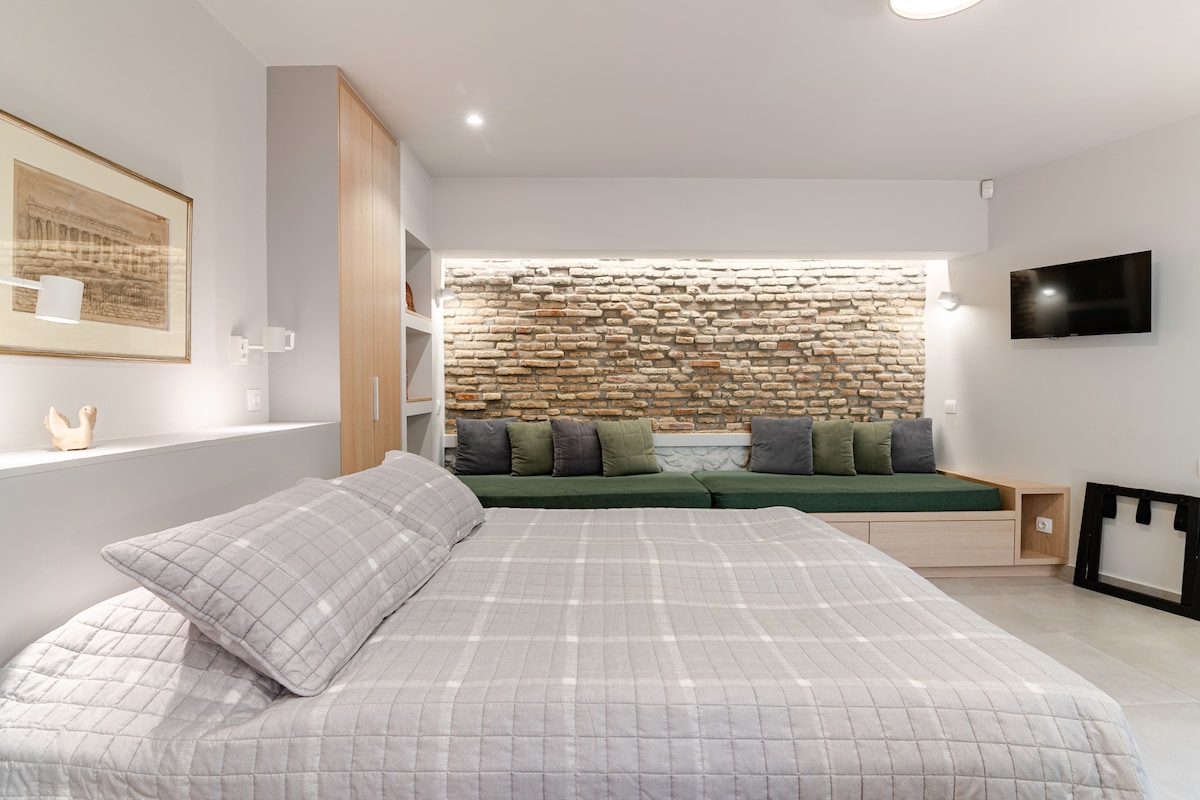 Choose this place if you are looking for a real Athenian experience combined with high-end hospitality in a fully renovated space. The Market Loft is located in the heart of the historical center, nearby major metro stations and walking distance from all the sights and attractions. It has a unique city view from the mountains to the sea, including a grand plan of the Acropolis and Lycabettus hill. It is designed minimally with high-end finishes, luxurious aesthetics and brand new equipment.