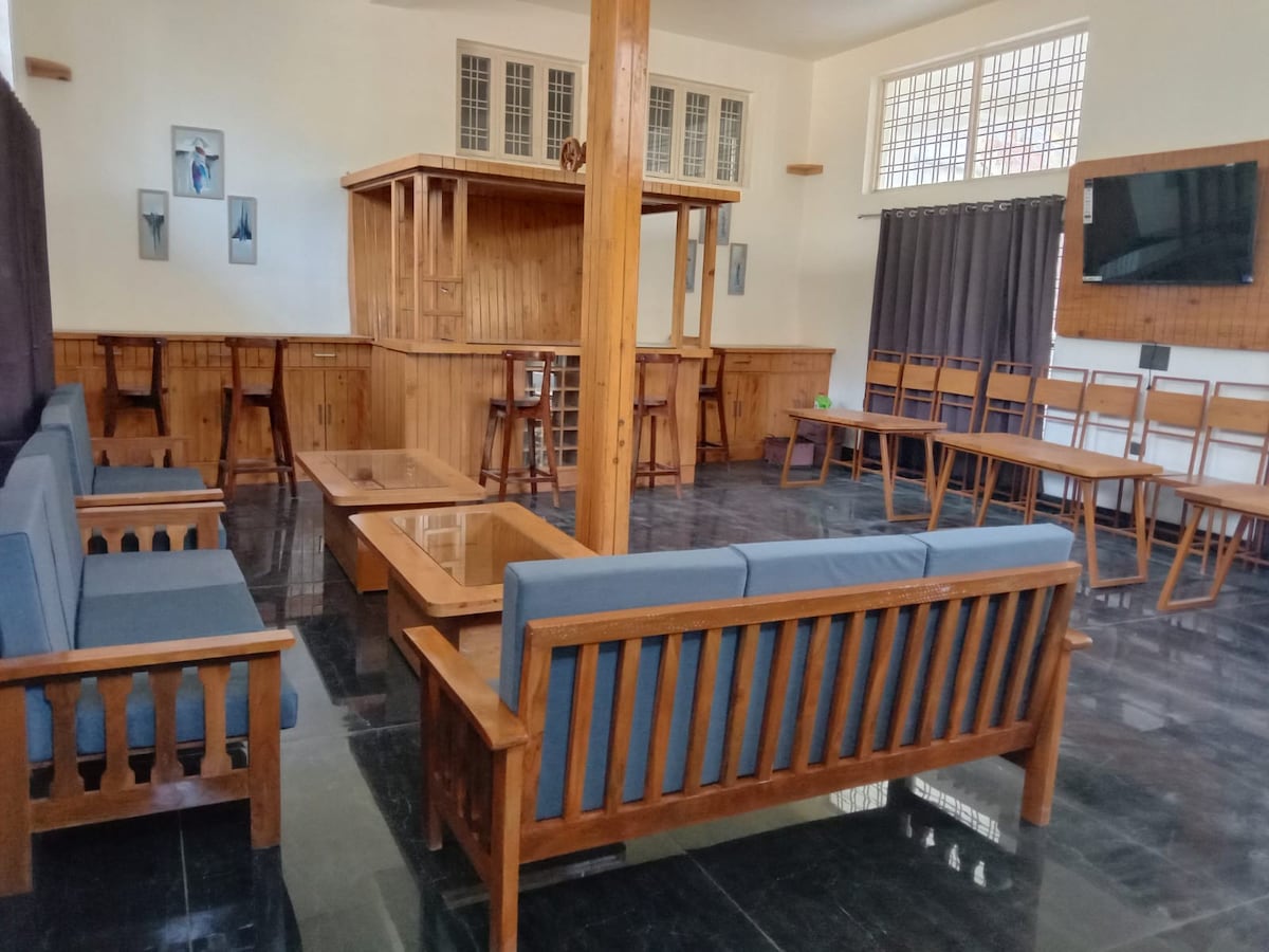 Experience a premium stay at Serenity Stay with AC rooms featuring a beautifully designed private balcony overlooking serene mountain views. Relax in stylish seating under an elegant arch, perfect for morning tea or sunset moments. The rooms are thoughtfully furnished for comfort and a refined feel. Ideal for families and groups seeking peace with a touch of luxury. Freshly prepared food is available on order for a complete, hassle-free stay.