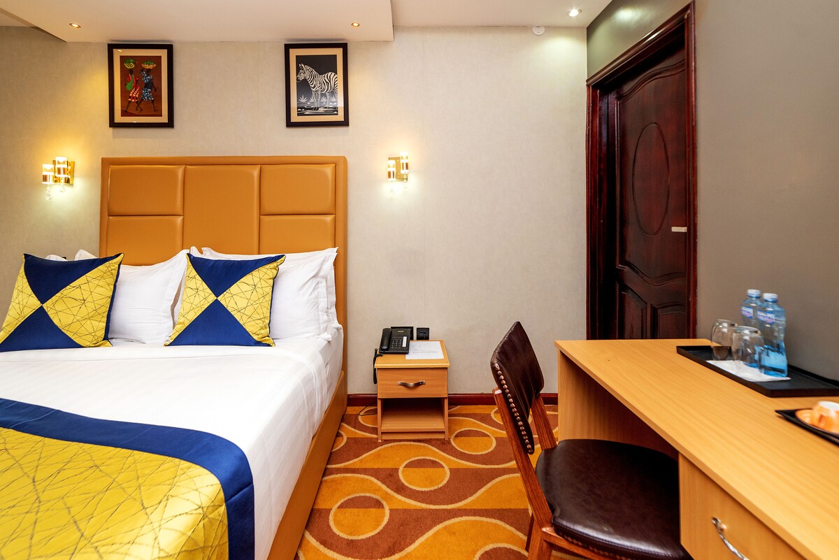Situada en el corazón de la ciudad de Kampala, a solo 6 minutos a pie del distrito central de negocios, esta espaciosa suite es más grande que la mayoría de los apartamentos en el centro de la ciudad. La suite con aire acondicionado cuenta con un dormitorio con inodoro en suite, una sala de estar extendida, un inodoro familiar y un balcón con vistas a la ciudad de Kampala. La mayoría de las atracciones de Kampala, bares populares, empresas son muy accesibles desde aquí. Wifi RÁPIDO, piscina, restaurante, bar, servicio de limpieza diario, agua caliente las 24 horas, los 7 días de la semana.