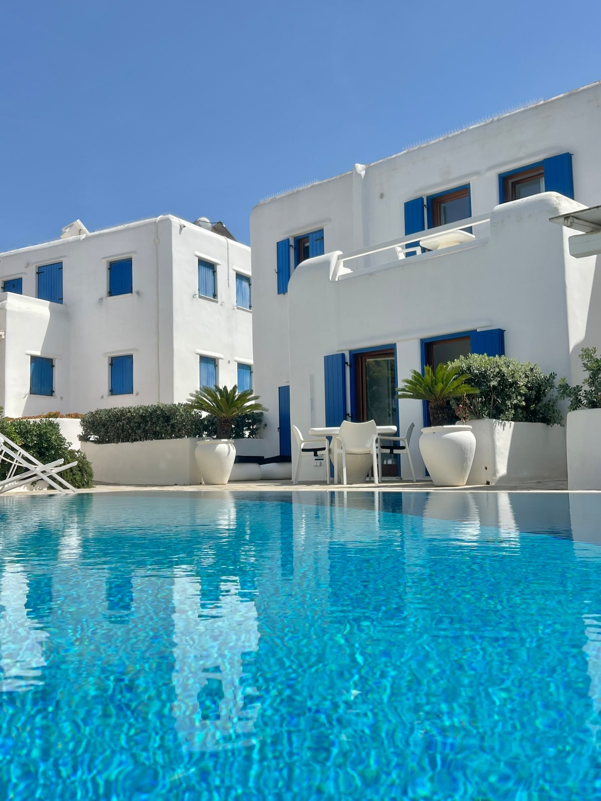 Disfrutá de unas bebidas cerca de la pileta con tus seres queridos. Te va a encantar la ubicación de esta casa, justo en el corazón de la ciudad de Miconos. Forma parte de un complejo exclusivo de residencias privadas construidas alrededor de una hermosa pileta compartida, un lujo poco común en la ciudad de Miconos. El diseño interior es realmente único y combina la elegancia tradicional de las Cícladas con el minimalismo de vanguardia. No duden en enviarme un mensaje para que pueda ayudarlos a organizar una estadía especial y a su medida.