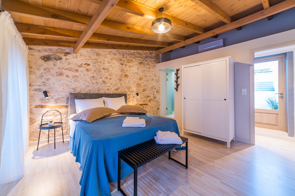 Escapate a una villa exótica única en Myli Gorge, a solo 15 minutos de Rethymno. Esta villa de tres dormitorios combina la arquitectura tradicional de piedra con un ambiente cálido y rústico, y cuenta con una piscina natural única. Un sendero de 5 minutos te lleva a la villa, donde podés disfrutar de una comida en una taberna cercana o relajarte en un entorno tranquilo. Ideal para relajarse y explorar, con senderos para caminar y lugares históricos a poca distancia.