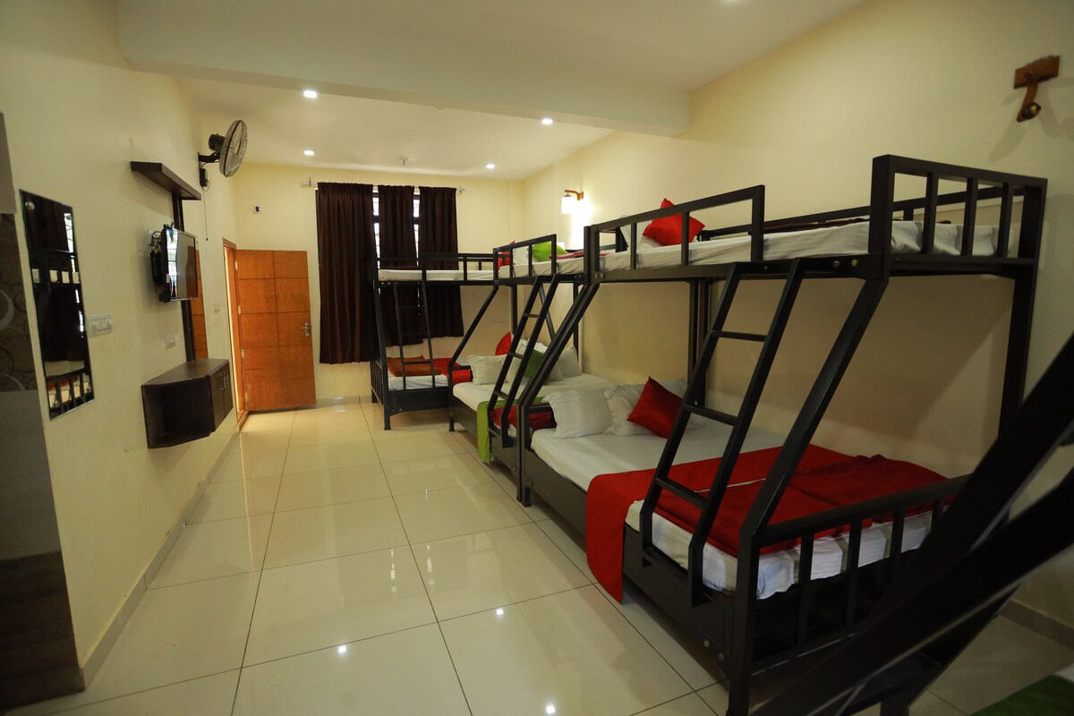 Este lugar elegante y único prepara el escenario para una reunión memorable por 12 o más. Literas perfectamente organizadas para los mejores momentos de diversión y adjuntas con 2 baños privados con agua caliente y ducha. La habitación está totalmente equipada las 24 horas. Hay salas de eventos interiores y ajustes de jardín al aire libre para que puedas organizar tu mejor momento junto con acampar, pescar, barbacoa y cualquier actividad de tus gustos. El restaurante de buena comida de linterna está justo en las instalaciones, para que puedas disfrutar de una maravilla a tiempo completo.