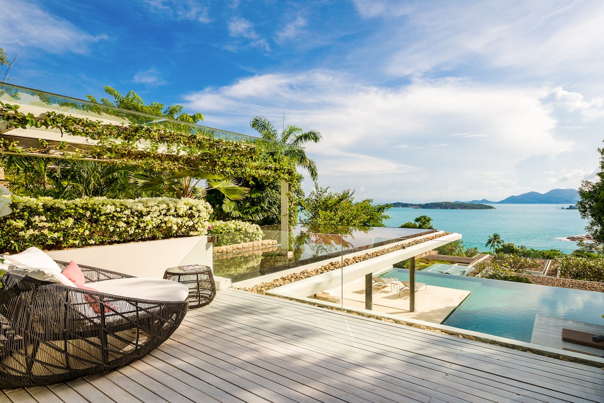 Villa Orca, managed by Inspiring Living Solutions, is a stunning five-bedroom sea-view villa in Koh Samui’s north-east. Designed in a modern tropical style, it blends natural textures, open spaces, and elegant comfort — perfect for families or friends seeking a stylish island escape.