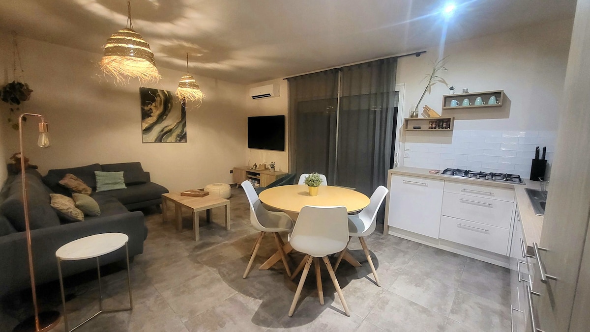 Détendez-vous dans ce logement calme et élégant. Situé dans un charmant petit village de la plaine de la Vaunage, à seulement 15 minutes de la gare de Nîmes centre et 30 minutes des plages camarguaises les plus proches, nous vous proposons ce logement de charme. Desservi par un tram vers Nîmes. Studio indépendant situé au rez-de chaussée. En tant que propriétaires, nous vivons à l'étage.
