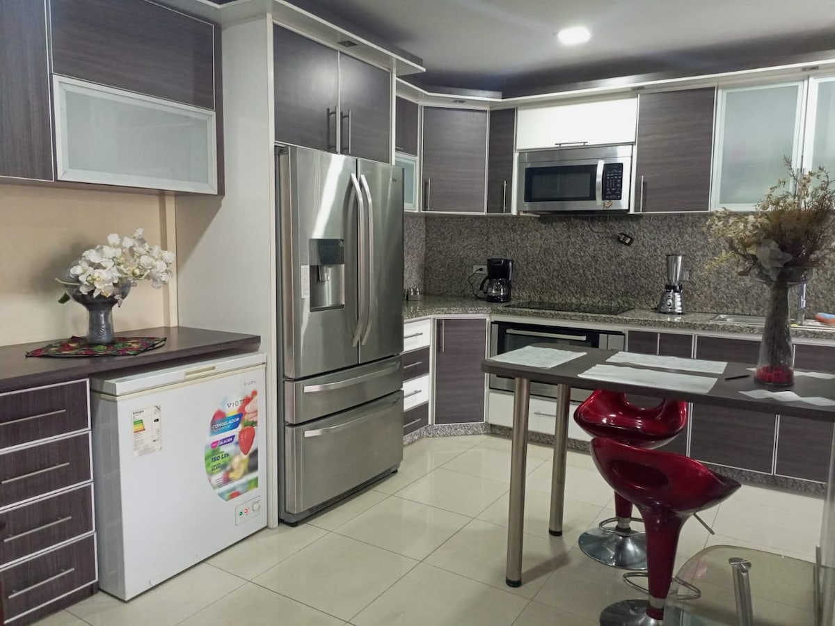 Como apartamento en una urbanización privilegiada. Incluye: Cama con sábana, Sofá cama, A/A, Wifi, TV con Netflix, Lavadora/secadora, Cocina 100% equipada, toallas y productos de aseo personal, plancha para ropa, secador de cabello. Características de la zona: El edificio con planta 100%, agua 24/7, un puesto de estacionamiento techado. A 1 cuadra se encuentran dos centros comerciales con supermercados, feria de comida, Farmatodo. Fácil acceso a distintas zonas de la ciudad y a la autopista.