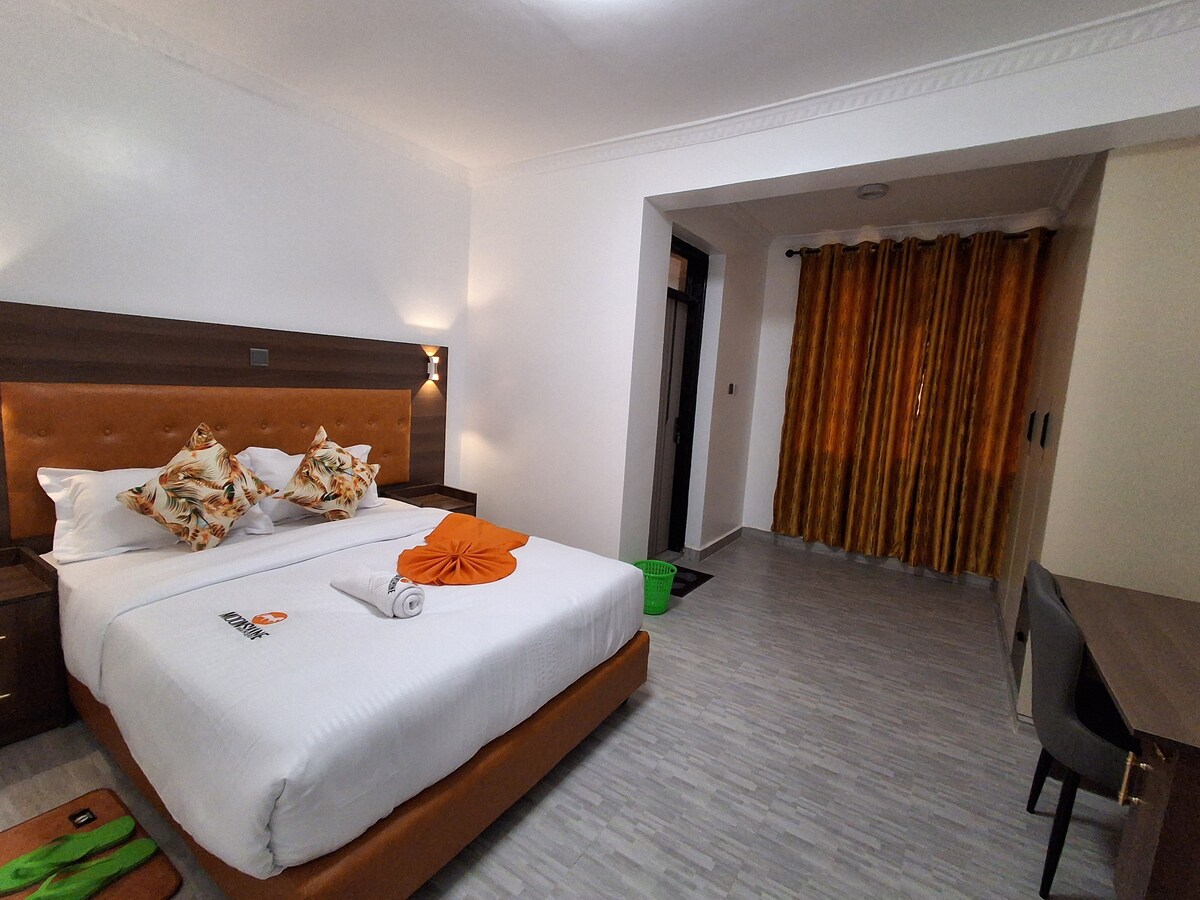 Enjoy a stylish experience at this centrally-located place. It’s 3min from Bufallo Mall and 15min walking distance to town Hot shower always available and good lighting. Has a view of the lake from a distance and gets enough natural lighting. Wardrobes for your clothing and kitchen cabinet for snacks. The home is filled with Boho + Modern cosy vibes for your getaway. The place is very secure and in town.