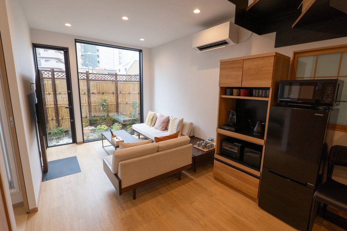 🏠[Descripción general de la propiedad] Una tranquila y sofisticada casa moderna japonesa ubicada en la zona de Osaka/Shitennoji. Es una casa completa completamente renovada, un living luminoso con un dormitorio limpio con vistas al jardín tsubo, y el área de agua similar a un hotel es atractiva. Capacidad para dormir: 8 Está a solo 5 minutos a pie de la estación de metro “Shitennoji Mae Yuhigaoka”. También tiene un acceso excelente a los principales destinos turísticos, como Abe's Harurisu, Tsutenkaku, Namba y Shinsaibashi. Disfrutá de una estadía relajante en una ciudad que combina historia y modernidad. 🗺️Acceso Estación Shitennoji Mae Yuhigaoka de la línea Tanimachi del metro: a unos 5 minutos a pie. JR · Kintetsu “Estación Tennoji”: 15 minutos a pie, 5 minutos en autobús Shitennoji (el templo oficial más antiguo de Japón): a 3 minutos a pie. Abe 's Harukas/Tennoji Zoo/Shinsekai: a 15 minutos a pie Shinsaibashi · Namba: a 10 minutos en metro 1. Minimercado: a 3 minutos a pie Es el lugar perfecto para hacer turismo o para una estadía larga. 🌸[Lo que más te va a gustar] Alojamiento privado completo Relajate en el living con jardín Interior cálido con armonía entre lo japonés y lo occidental Recomendado para familias, parejas, amigos y viajes de negocios Totalmente equipado con servicios como cepillos de dientes, toallas y utensilios de cocina