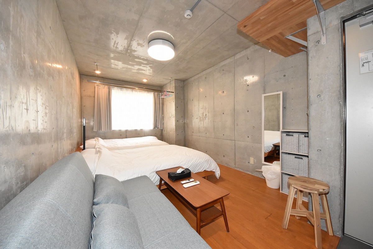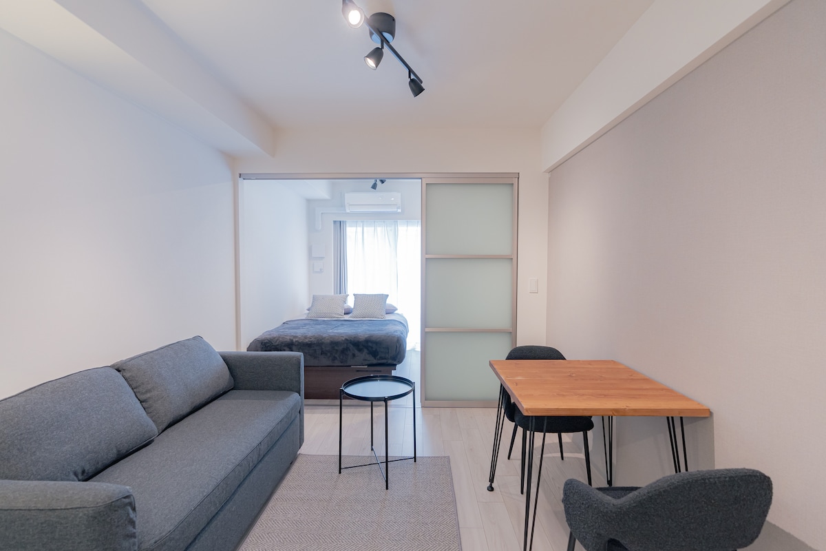 ¡Gracias por visitar mi habitación! Si te gusta★ esta habitación, registra tu favorito ^ ^ Puedes ver la habitación en tu lista de favoritos.★ ☆Estación más cercana☆ A 6 minutos a pie de la salida n .º 7 de la estación de Nipponbashi en la línea de metro Sakaisuji. Desde la estación de ★Nihonbashi, también puedes llegar a Tsutenkaku, al castillo de Osaka, a Kioto y a Nara. No hay ascensor en el edificio.La habitación estará arriba. Hay pocos escalones hacia abajo para que puedas subir y bajar con relativa facilidad porque hay pocos escalones. · El edificio es nuevo y el interior es elegante y elegante en una habitación elegante con hormigón. El barrio es tranquilo, por lo que puedes dormir muy bien por la noche. Los idiomas admitidos son inglés y japonés. ※ Esta habitación se opera con permiso de alojamiento privado. Para cumplir con las leyes y normativas, los huéspedes deben enviar una foto del pasaporte y rellenar una lista de huéspedes. Por favor, pasa una buena vida en Osaka en esta cómoda habitación.