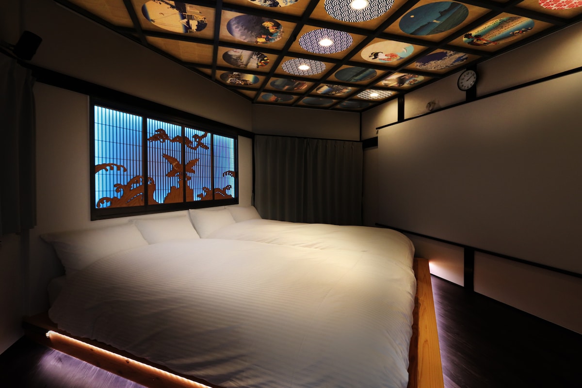 Acceso ●directo desde el aeropuerto de Kansai Aeropuerto JR Kansai → JR Bentencho (55 min) ●Estaciones más cercanas Osaka Metro Bentencho: A 6 minutos a pie JR Bentencho: A 9 minutos a pie 🌸Máximo 8 huéspedes (mejor para 6) 🌸3 dormitorios, incluida una gran cama de madera maciza para dormir de estilo familiar Obras 🌸clásicas de arte japonesas adornan el techo 🌸Una ruta para principiantes. Ruta sencilla por la carretera principal, sin callejuelas complicadas. 🌸El paraíso de un amante de la comida en Minato Ward ¡Joyas ocultas y restaurantes populares de grandes porciones a pocos minutos!