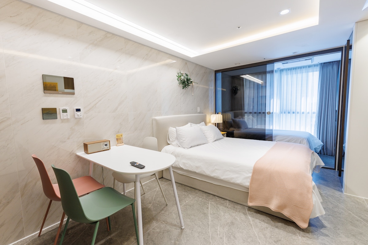* Abierto en noviembre de 2023 * Es una acogedora y agradable residencia de alto nivel con vestuario y balcón. Espero que el espacio que puedes relajarte por un tiempo sea más cómodo Subway: 5 minutos a pie de la Terminal Nambu Línea 3 Autobús del aeropuerto: No. 6016 para 3 minutos a pie Cuando se utiliza la línea de metro 3, Gwanghwamun, Bukchon etc se puede mover de inmediato sin transferir Proporcionar canales de cable y varios OTT(ex, Netflix, Disney Plus)-login de cuenta personal requerido
