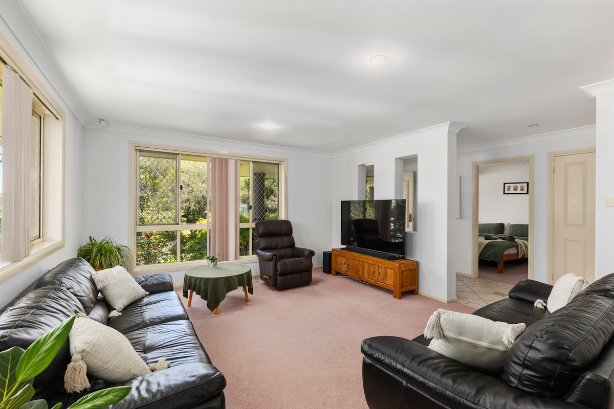 Relax with the whole family at this peaceful place to stay. Bella Valla is a beautiful four bedroom home with timber floors, cathedral ceilings , leadlight windows and a relaxing garden to enjoy. Bordering onto the reserve and only 500m stroll from the backyard to the surf beach, fishing, walk to swimming estuary , cafes, park with skate bowl, basketball hoops, store, pharmacy and Tavern with a restaurant. A short 10 minute drive to Nambucca Heads and only 30 minutes South of Coffs Harbour.