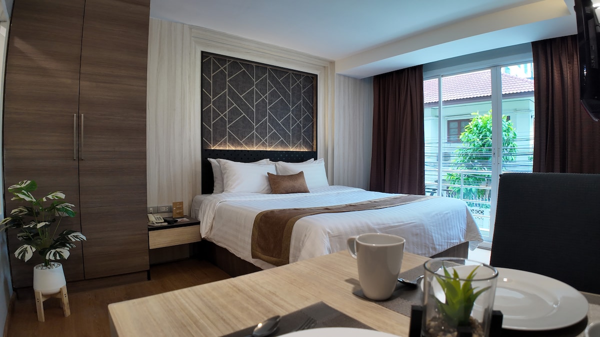 Experimenta la comodidad moderna en nuestra habitación recién renovada, a solo un paso de BTS Ari. Disfruta de impresionantes vistas a la ciudad y al atardecer desde grandes ventanales, perfectos para relajarte después de un día explorando Bangkok. Nuestro espacio cuenta con una decoración inspirada a mediados de siglo, una acogedora cama tamaño king y un ambiente tranquilo. Convenientemente ubicado cerca de cafés de moda, mercados locales y transporte público, es ideal para exploradores urbanos que buscan un refugio elegante en el corazón de la ciudad.
