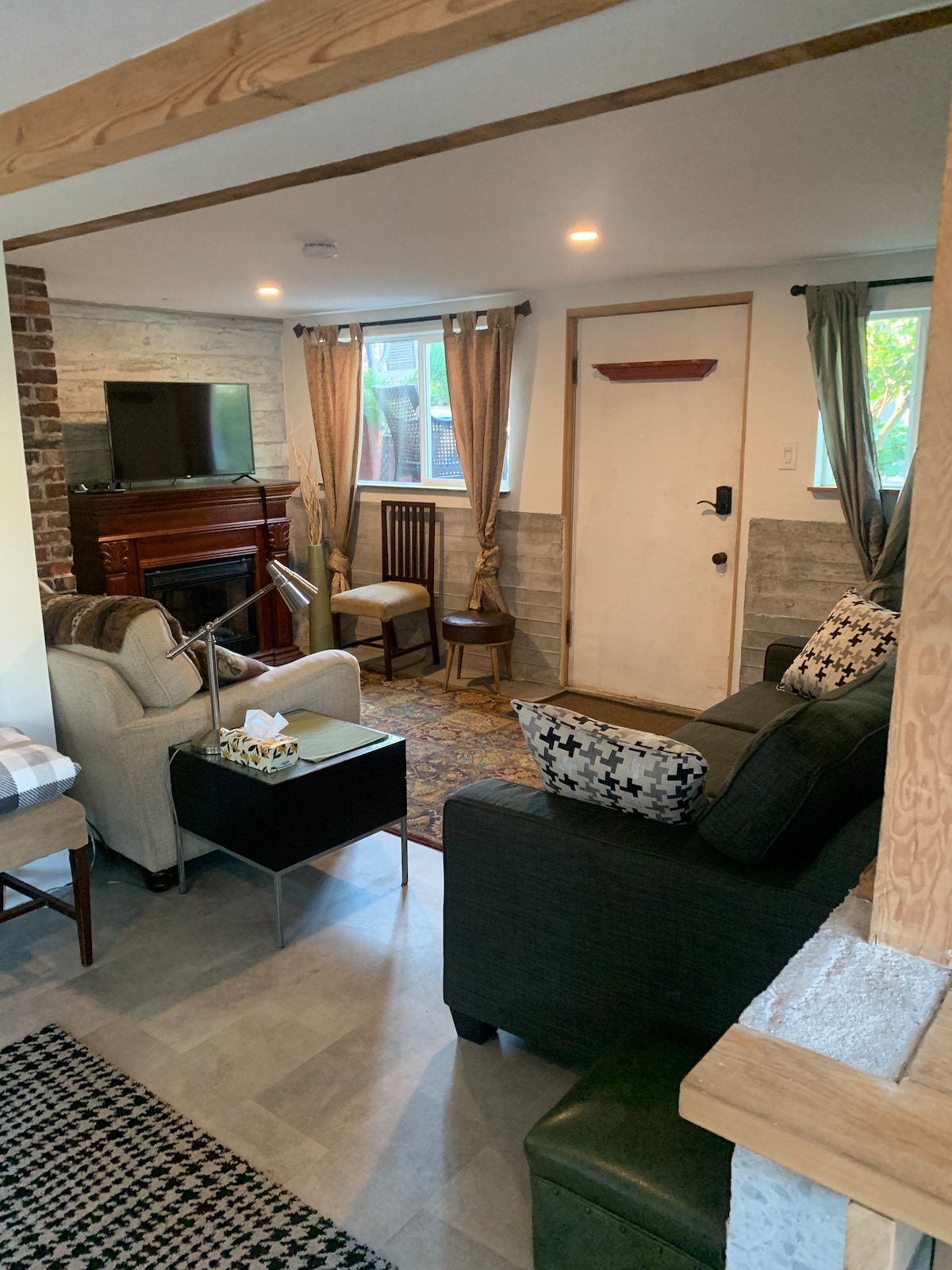 Licencia comercial # 5033066 El Machleary Hideaway es un lugar al que puedes llamar hogar lejos de casa. Diseñado para acomodar, parejas, familias, gente de negocios o un espacio para que los amigos disfruten mientras descubren Nanaimo Totalmente amueblado, con una chimenea de gas, TV grande, altavoz de sonido Bluetooth, estaciones de carga, cocina completa, dos dormitorios, dos baños, espacio de oficina con vistas al puerto. La decoración es sencilla, limpia y ordenada. Los techos de mayor altura le dan al lugar una sensación abierta y espaciosa.