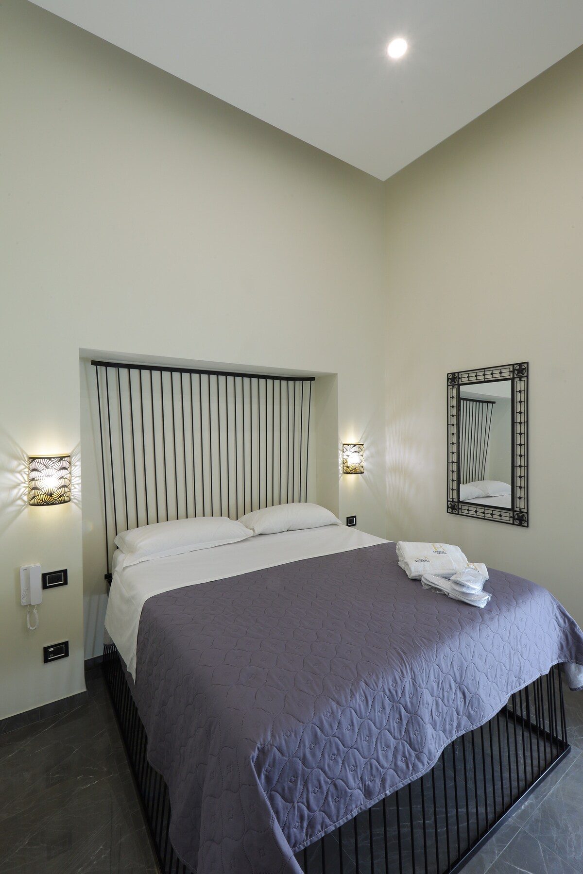 Las habitaciones Superior del Palazzo Della Mura son las más adecuadas para una estancia larga, con el compromiso de calidad/precio adecuado. La cómoda cama doble se puede transformar en una cama individual doble (con la posibilidad de agregar una cama individual adicional), baños con ducha y cromoterapia, artículos de tocador, TV inteligente con servicio Sky Hotel Gold, aire acondicionado, wifi rápido y balcón.