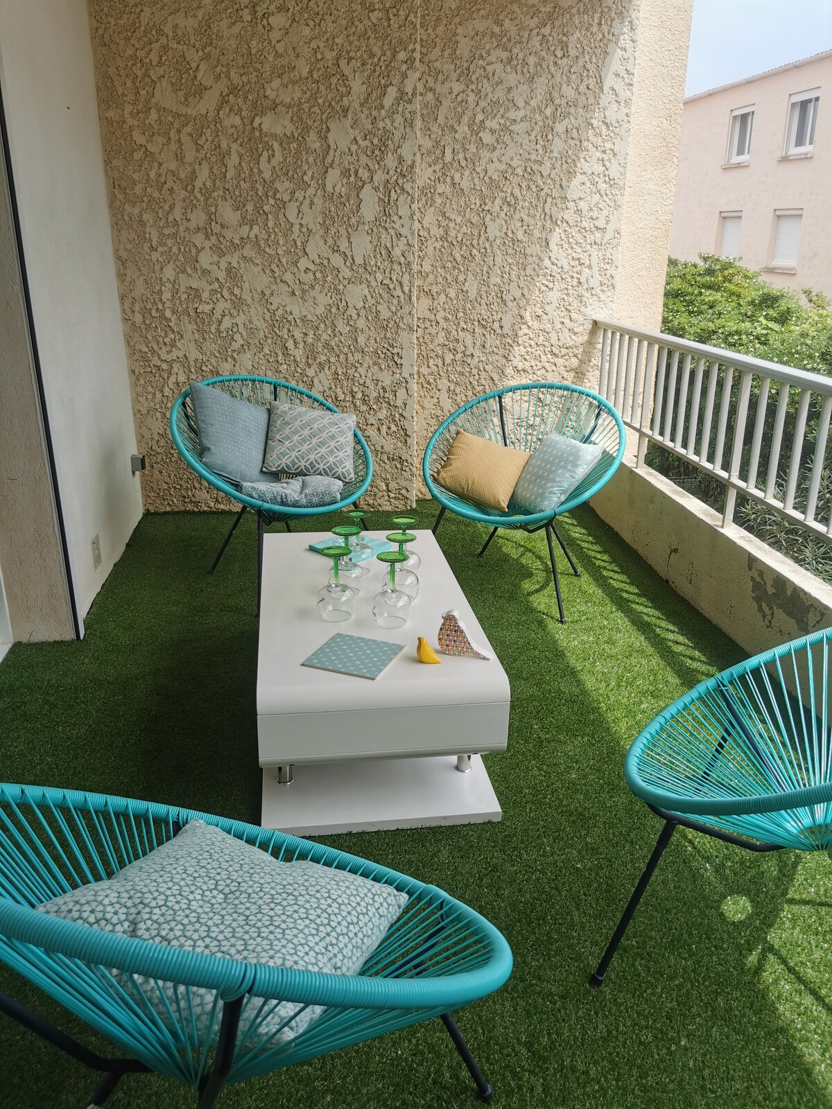 Beautiful 50 sqm character apartment, peacefully located in the courtyard of a historic 1850 building. Set on the 2nd floor with no elevator (spiral staircase), it enjoys an exceptional location in the heart of Narbonne, just steps from Les Halles. Elegantly renovated, it features a cozy living room with sofa bed, equipped kitchen, workspace and a lovely suite with a dressing room. Perfect for a comfortable and authentic stay.