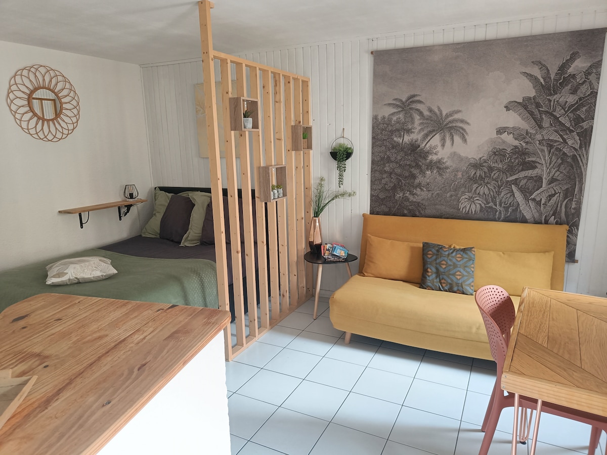 A 5 minutos de Narbona, en Montredon des Corbières. Déjese llevar por el canto de las cigarras en este bonito estudio de 20 m², con terraza privada. El anfitrión le da la bienvenida a su casa , pero el acceso es independiente. El local está totalmente dedicado a usted, cama de 140 , aire acondicionado, TV, WIFI , cocina equipada , cuarto de baño con inodoro. ropa de cama incluida. Puede aparcar su vehículo en el callejón sin salida de forma gratuita. Ideal para descansar después de una visita a la zona, o el trabajo ,o un día de playa.