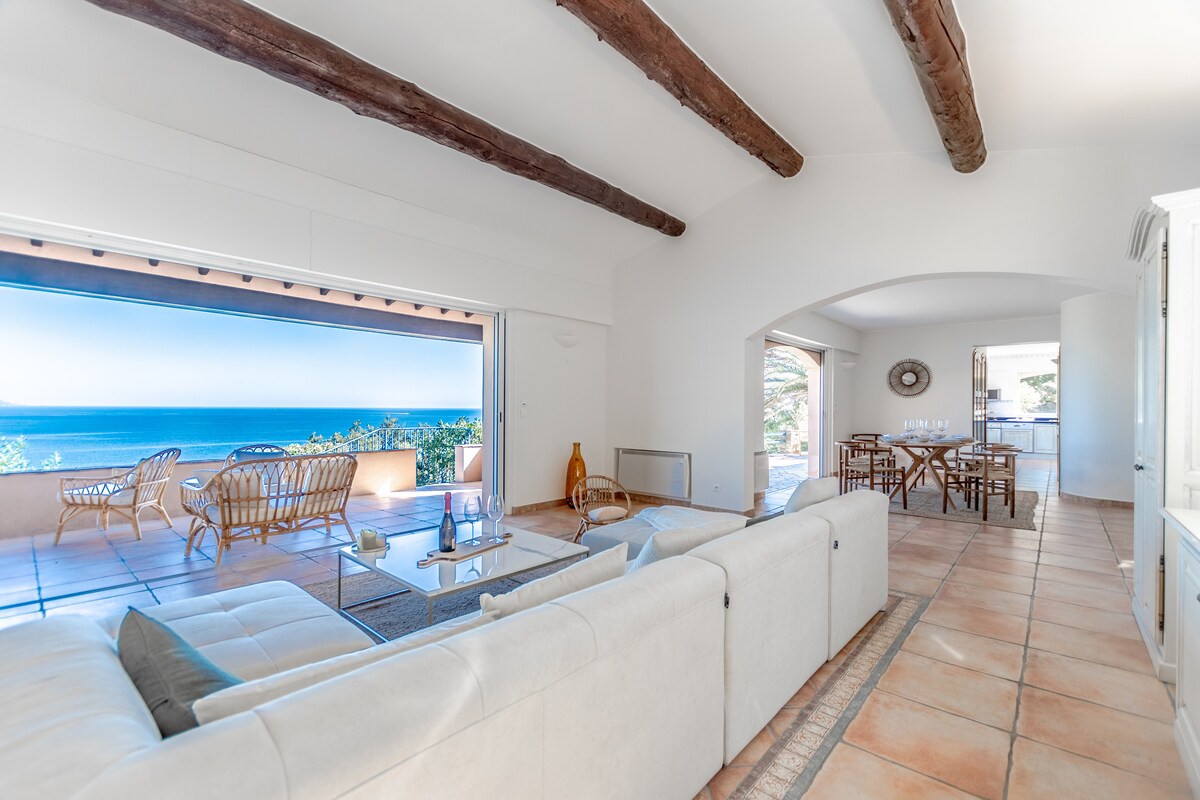 RARE in SAINTE-MAXIME: Villa NEAR THE CENTER, by the SEA. PANORAMIC SEA VIEW, HEATED POOL from April to the end of October. The 170 m2 Villa is located on 1,000 m2 of vegetated and fenced LAND, with parking and heated swimming pool from 15/04 to 31/10. It has 3 air-conditioned bedrooms. - 1 master bedroom and its adjoining bathroom with bathtub and shower - Upstairs 2 bedrooms and a bathroom The seaside is accessible on foot and the city center is only a few kilometers away.