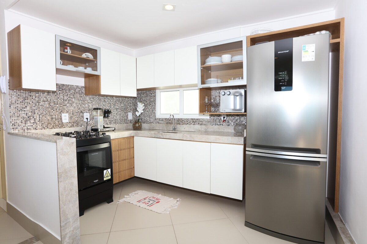 Cómoda casa en una comunidad cerrada con piscina en Ponta Negra, perfecta para familias o grupos en un tour o viaje de negocios. Ubicación privilegiada cerca de la playa, Morro do Careca, mercados, restaurantes y tiendas locales. Ofrece wifi rápido, check-in sin restricción de horario, garaje, espacio de trabajo y cocina completa para una estadía práctica y cómoda. Fácil acceso al centro de convenciones, la carretera costera y la ruta del sol para explorar las playas y lagunas de la costa norte y sur.