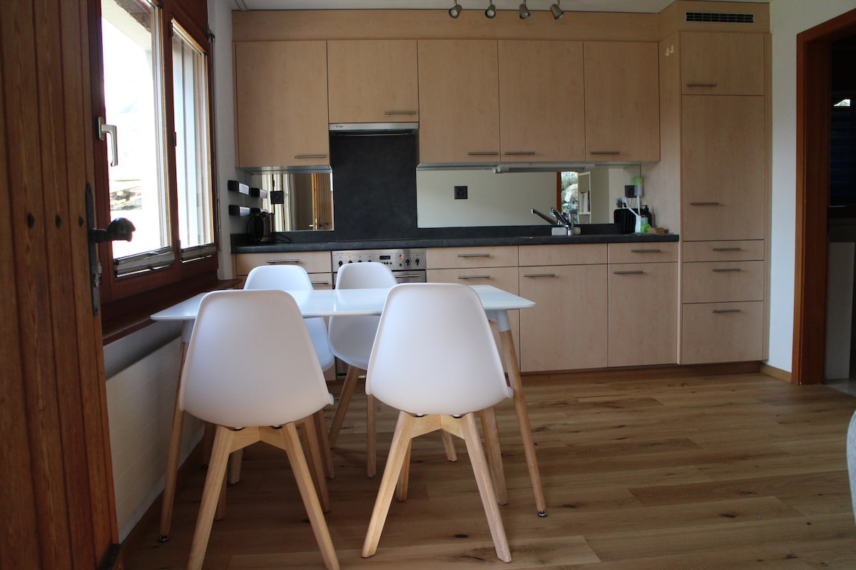 El apartamento de vacaciones, situado en el centro de Saastal / Mattertal / Visp y alrededores, ofrece espacio suficiente para un máximo de 5 personas. En los dos dormitorios hay espacio para un total de 4 personas. En el cómodo sofá cama también hay espacio para que duerma una persona más. El acogedor comedor con elegantes muebles de madera real invita a quedarse. La gran televisión y la conexión wifi gratuita ofrecen entretenimiento para los días de lluvia y la cocina totalmente equipada ofrece todo lo necesario.