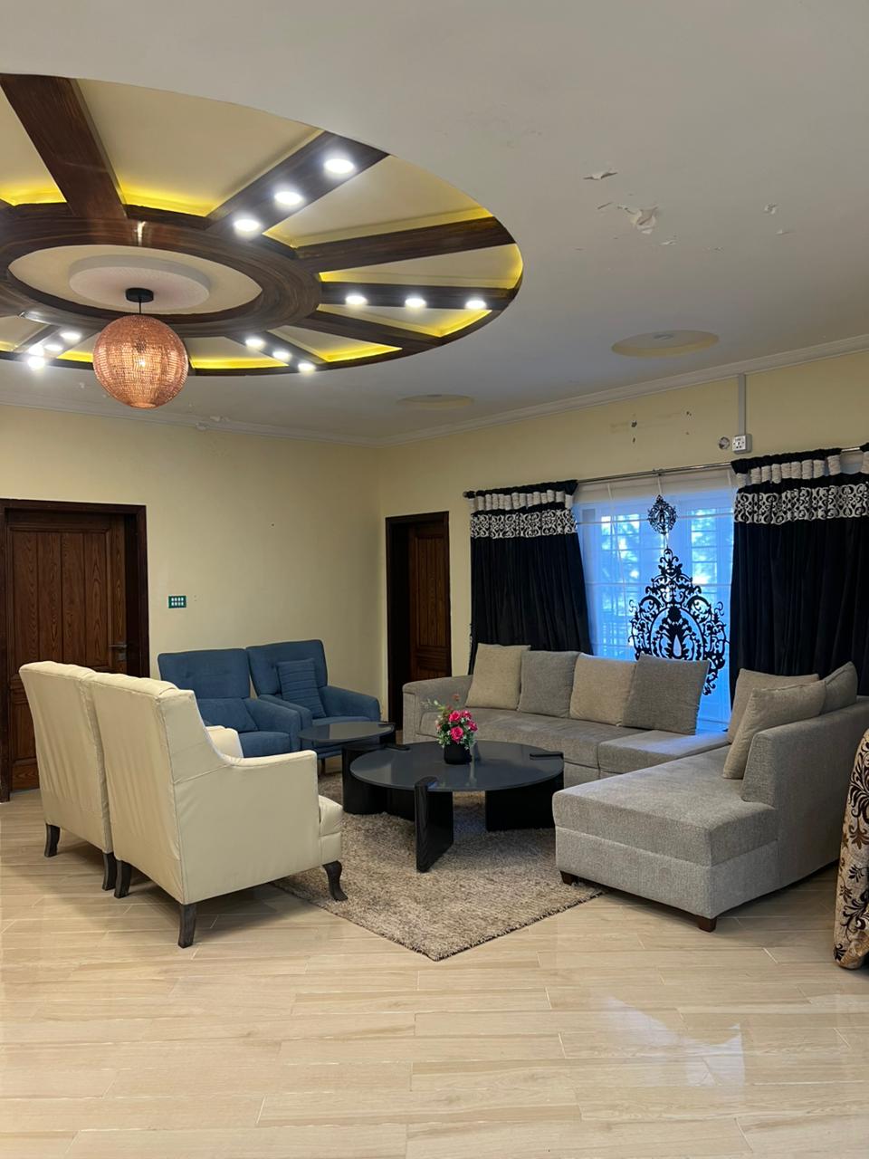 This is our five bedroom villa with five attach bath and kitchen living area dining area terris. wifi backup generator save parking hot water room service