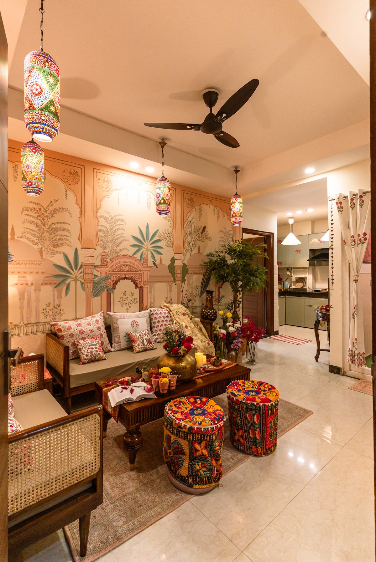 Nuestro departamento de dos dormitorios tiene una verdadera sensación de ciudad. Se adapta cómodamente a cuatro personas. Tendrás todo el apartamento para ti: un hermoso jardín, una cocina bien equipada y un estudio acogedor. El apartamento ofrece fácil acceso al histórico complejo Qutab Minar, a varios parques y centros comerciales con restaurantes y cines. También está a poca distancia de los hospitales de especialidad Max y Max Smart. Moverse es conveniente con el metro (línea amarilla) a solo dos minutos a pie.