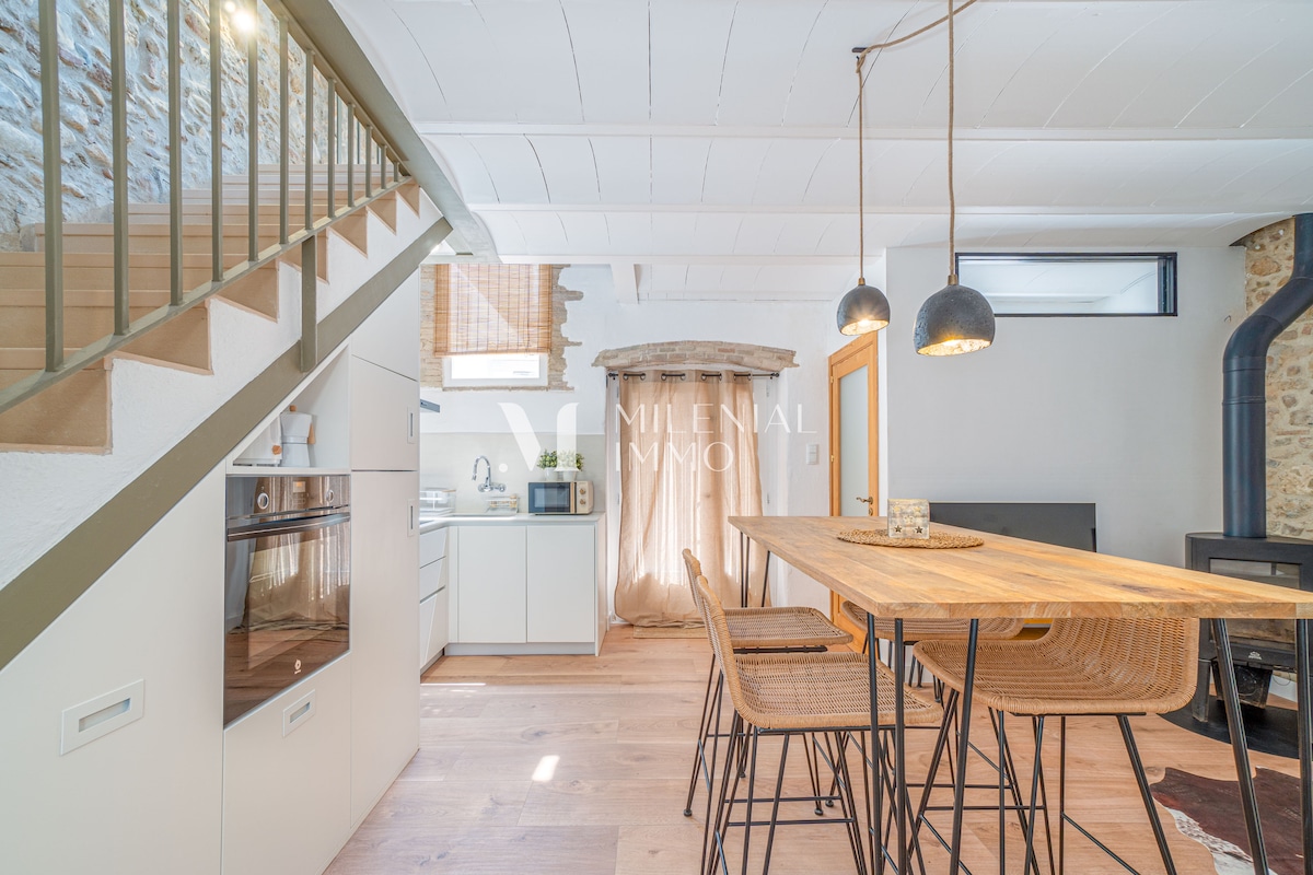 Alojamiento único en el corazón del Empordà, muy cerca de las playas y los pueblos más bonitos de la zona. Apartamento de invitados con entrada independiente desde la calle. Con dos plantas, con cocina, comedor y sala de estar en planta baja, y dormitorio con aseo en planta superior. Jardín, piscina y barbacoa se comparten con la finca principal (propietarios de la finca) El espacio està adecuado para dos adultos. No es adecuado ni para niños ni para bebés.