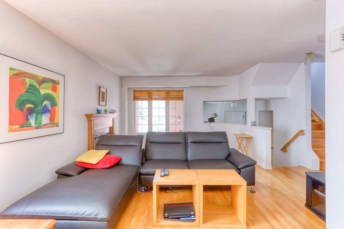 Experience comfort and style in our newly finished, modern open concept kitchen and living room. Equipped with a TV, fridge/freezer, microwave/oven, air fryer, washer, and dryer. Just 8 mins from the airport, 20 mins to downtown, and walking distance to groceries, coffee shops, parks, and restaurants. Enjoy privacy with a separate entrance and secure bedroom with its own locked keys. Quiet neighborhood, perfect for business or pleasure. Book now for a memorable stay in Ottawa!