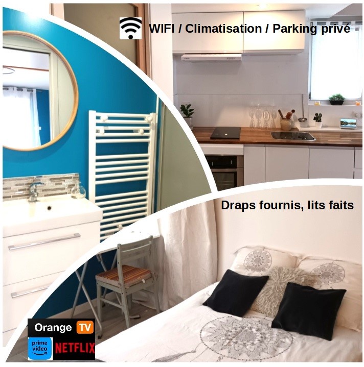 pequeño estudio totalmente equipado ( cocina, baño, aire acondicionado, TV ).el estudio se encuentra en una casa de pueblo cerca de todos los servicios ( tren,autopista, supermercado). el alojamiento incluye una cama grande para 2 personas, así como una cama supletoria si es necesario. La paz y la tranquilidad son las palabras clave de esta casa. El acceso a la vivienda es libre, independientemente de la hora de llegada. ideal para una estadía larga o corta.