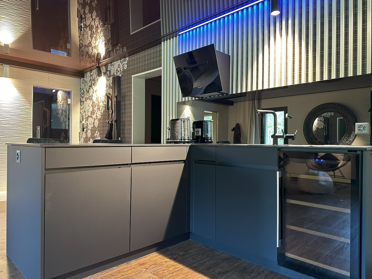 Habitación con terraza amplia. Cocina: cocina totalmente equipada con lavavajillas, placa de cocción, microondas, horno y cafetera. Las bebidas se proporcionan de forma gratuita. -Sala de estar: sofá cama. Wifi gratuito, gran Smart TV -Cuarto de baño: espacioso inodoro con ducha y espejo grande. -Iluminación: iluminación LED ambiental La habitación te ofrece la combinación perfecta de confort y relajación con un estilo propio. Ideal para parejas (+ niño), personas que viajan solas o viajeros de negocios