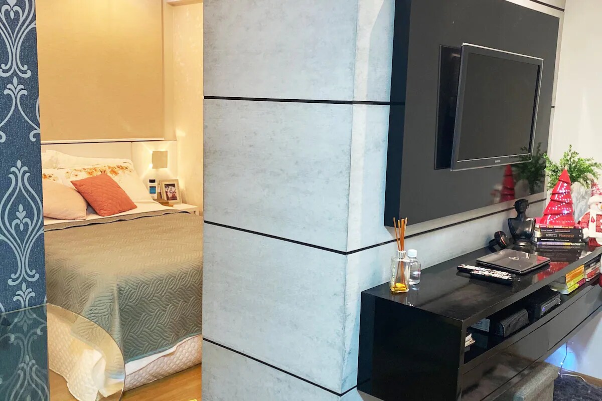 Hermoso apartamento tipo estudio con garaje, en el centro de Blumenau, ¡cerca de todo! El edificio tiene un gimnasio y una increíble piscina en la azotea. El departamento está completo y muy elegante. Cama doble, sábanas, fundas, almohadas, toallas de baño, aire acondicionado. Cocina completa con nevera, microondas y vajilla para 2 personas. Lavandería con mesa de plancha y plancha
