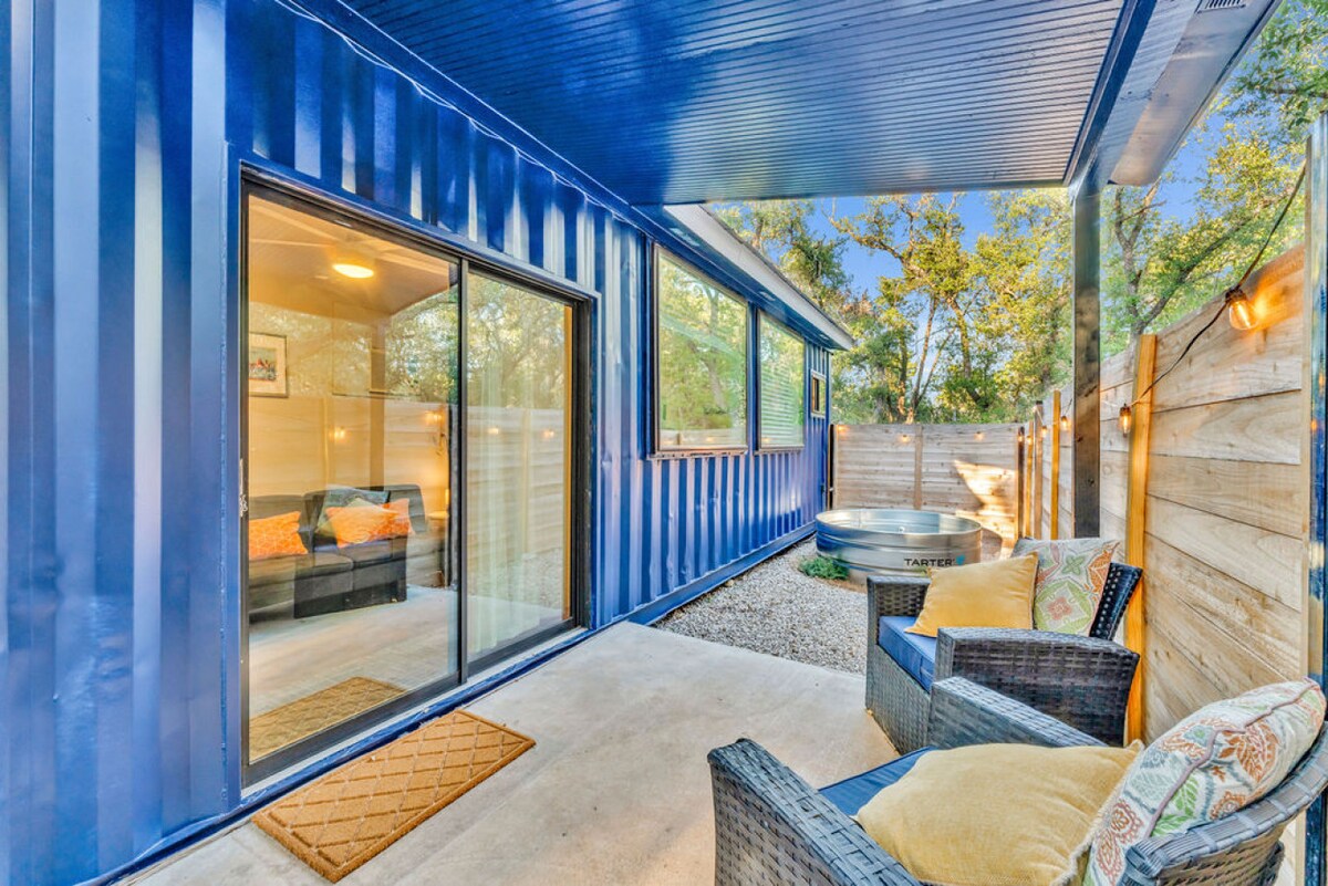 Discover a unique getaway at the Hill Country Casita, a compact & stylish shipping container home perfect for couples or solo travelers seeking a private retreat. This modern, efficient space offers all the essentials for a comfortable stay with a touch of Texas charm. Step out to your private patio & enjoy: ⭐A refreshing cowboy pool for cooling off on sunny Texas days ⭐Comfortable seating for relaxing or enjoying your morning coffee ⭐A private space perfect for peaceful evenings ⭐Local Wine!