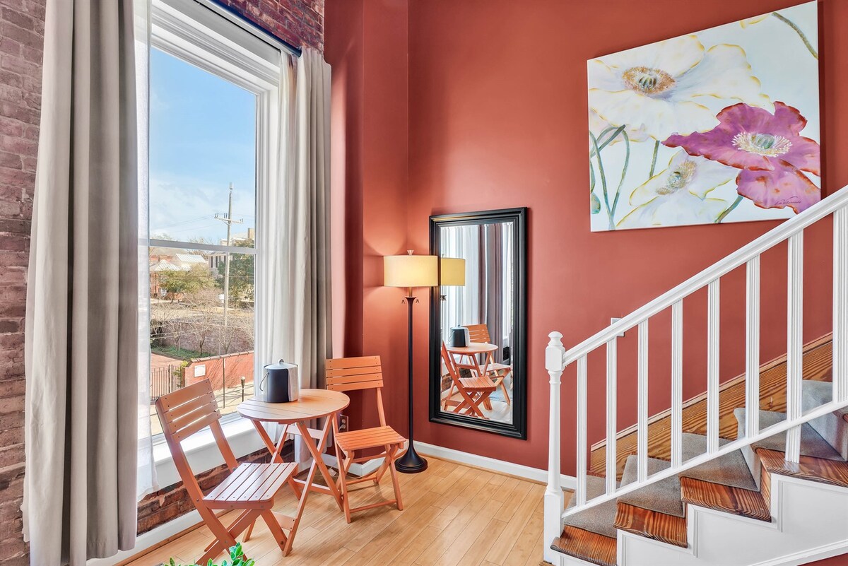 Pontiac Pl. circa 1948 car dealership converted into loft/apts. in 1996. Heart of historic downtown Wilmington blocks away from the Riverfront, Wilson Center for Performing Arts, Live Oak Pavilion, Thalian Hall. Short drive/Uber ride to Greenfield Lake, Battleship N.C. & local beaches. A private secure stay includes one parking space & on-site Coin-op laundry facilities. Whether here for business,concert,musical,festival, historical sites or romantic vacation, you are in luck!