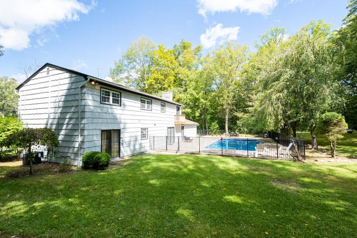 Unwind in a sun-filled glass chalet with panoramic forest views. Sip cocktails at your private bar, challenge friends to arcade games, and relax under the stars in your secluded hot tub. Located only an hour away from New York City, this secluded sanctuary is nestled between Warwick, Greenwood Lake, and Vernon, NJ. It is with a host of amenities (in-ground pool, jacuzzi, central air, wood stove Fireplace washer and dryer) and is conveniently located near many year around attractions.
