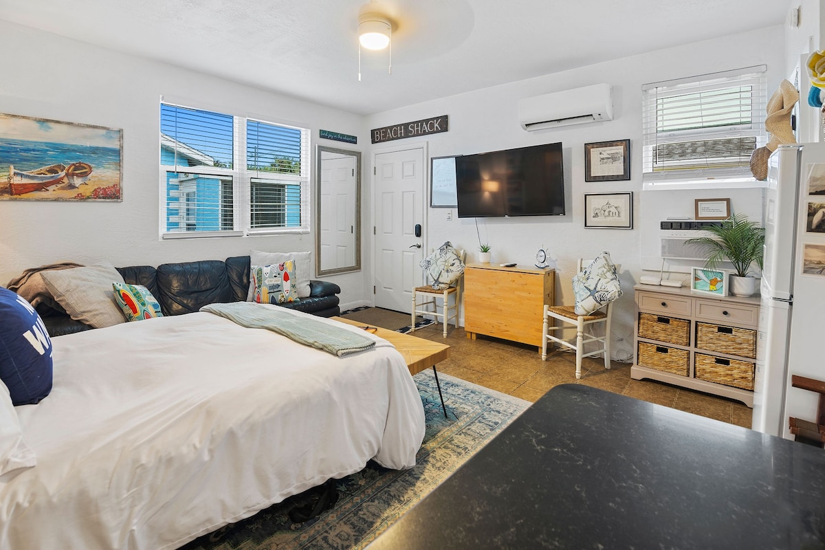 ¡El paraíso está justo enfrente de este estudio súper lindo y cuidadosamente amueblado con habitación extra! ¡Disfrute del sol, las olas y los espectaculares amaneceres! 3 minutos a pie del océano, restaurantes/bares y alquiler de SUP/tablas de surf. El distrito histórico de NSB está a menos de 2 millas donde la avenida Flagler llena de acción y la pintoresca calle Canal ofrecen festivales, vida nocturna, boutiques, alquiler de kayaks/bicicletas, galerías de arte, música en vivo, spas, parques, yoga, tiendas de antigüedades, museos, excursiones en barco y restaurantes fabulosos. ¡Es la hora de la playa!😃