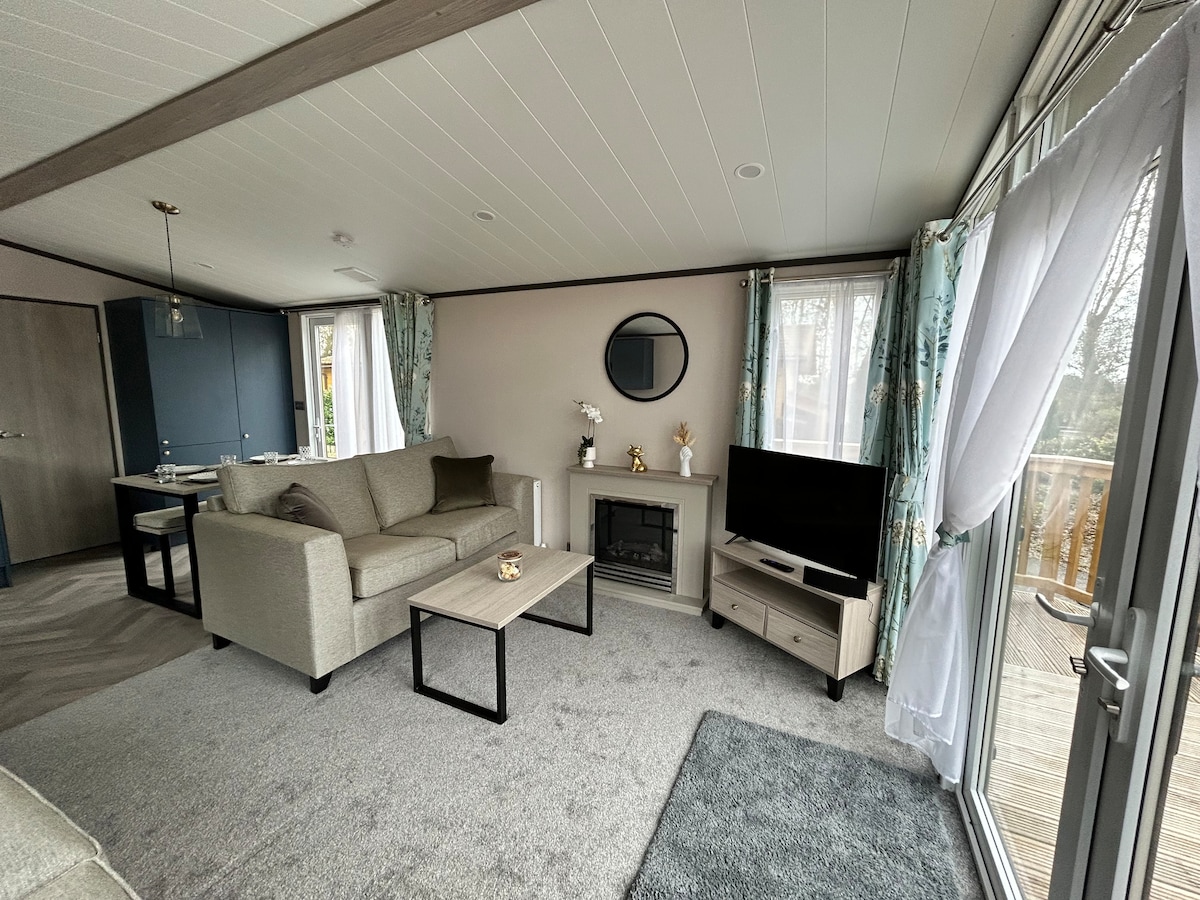 Tómate un descanso y relájate en esta tranquila cabaña situada cerca de York y Wilberfoss. Un lugar perfecto para escapar con tus seres queridos, explorar pueblos cercanos y paseos locales. Hay dos dormitorios, un baño con bañera y ducha. Hay un cómodo sofá de esquina y una gran sala de estar de planta abierta para cocinar y comer juntos, relajarse y ver una película. Desayuna en el balcón. Durante el día, disfruta del patio y del almuerzo al aire libre o relájate bajo el sol. El jacuzzi lo convierte en una noche perfecta para relajarse.