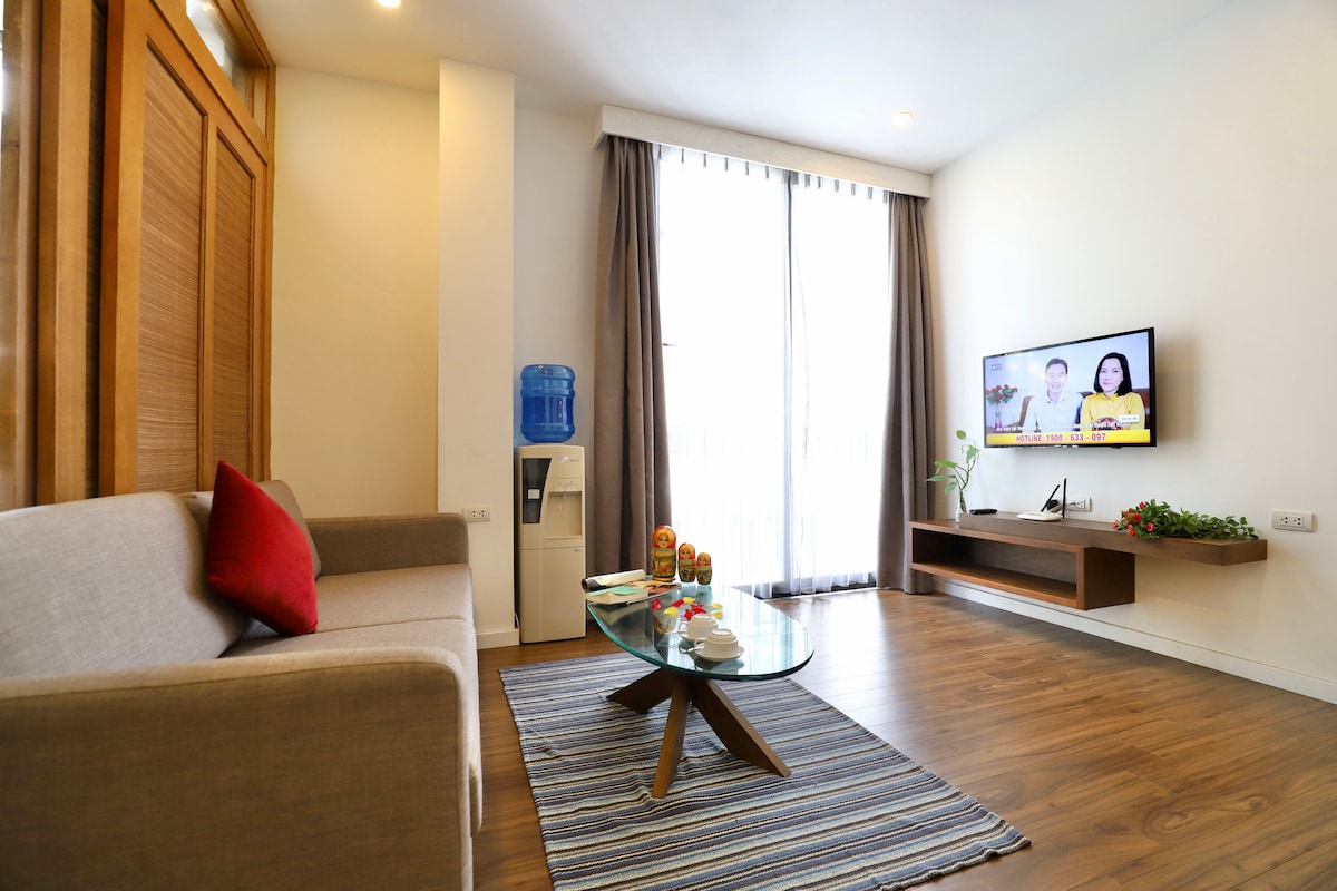 Premium Japanese-style apartment in central Hanoi, walking distance to Diplomatic Academy & Foreign Trade University. Guests have full access to entire unit: living room, bedroom, bathroom & fully-equipped kitchen. Legally licensed for short/long-term stays. Bedroom with 2 single beds or 1 double bed, perfect for extended stays. Building amenities: free gym, swimming pool ($2/visit), supermarket, reading roo