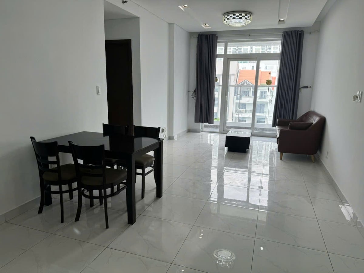 Este apartamento se encuentra en el distrito 7, ciudad de Ho Chi Minh. Complejo Q7 Riverside. Está a solo 3,5 km del centro comercial Cresent. Para hacer ejercicio, tenemos una bicicleta elíptica y puedes usarla libremente cuando te hospedes aquí.