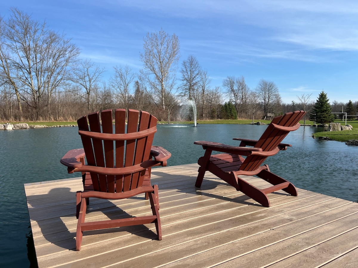 Bienvenido a nuestro apacible, sereno y tranquilo refugio de 1,7 acres rodeado de árboles en la hermosa Niagara-on-the-Lake. Nuestro encantador bungalow de techos altos ofrece una experiencia única con amigables gallinas y gansos de granja en el lugar, un jardín que cuenta con más de 100 rosas y plantas, una sauna y un pozo de fuego. Relájate en un entorno tranquilo, crea recuerdos duraderos y disfruta de la combinación perfecta de comodidad y belleza natural. Cerca de bodegas y atracciones. ¡Reserva ahora para una escapada familiar inolvidable!