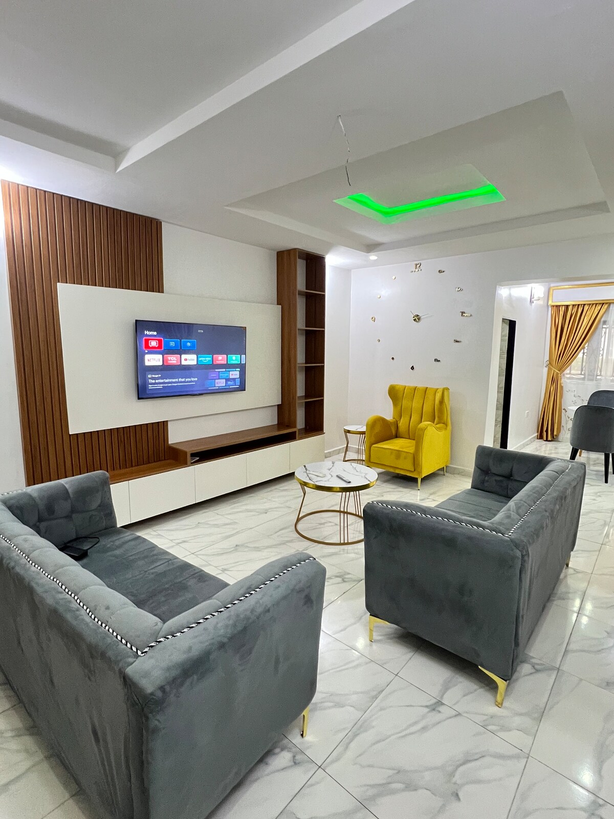 Nuestro apartamento es único, espacioso, ideal para familias y está bien decorado. Se encuentra en una finca asfaltada, segura y cerrada en Abuja. La zona es de fácil acceso a cualquier lugar que planees explorar en Abuja. Muy cerca de la autopista sin problemas de tráfico dentro de la zona. Los alrededores son impresionantes, con una arquitectura y unas casas únicas. Las características del apartamento incluyen suministro eléctrico 24/7, internet rápido de fibra óptica, Netflix, agua limpia, servicio de limpieza diario, tenis de mesa, aire acondicionado, TV inteligente y paz.