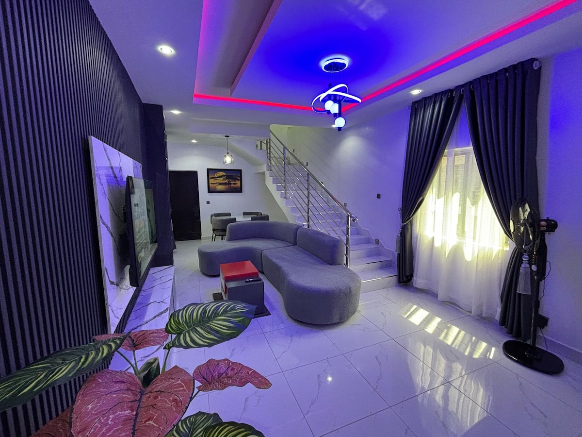 Experience privacy in our stylishly furnished 4-bedroom duplex, perfect for relaxation or business. Our home offers 24/7 power, 5G internet, housekeeping, security, Smart TVs, DSTV, PlayStation 5, snooker, and table tennis. Each en-suite bedroom provides privacy, while the fully equipped kitchen, dedicated car park, and smart entry adds convenience. Our home is Ideal for professionals, families, and those who value privacy and modern design.