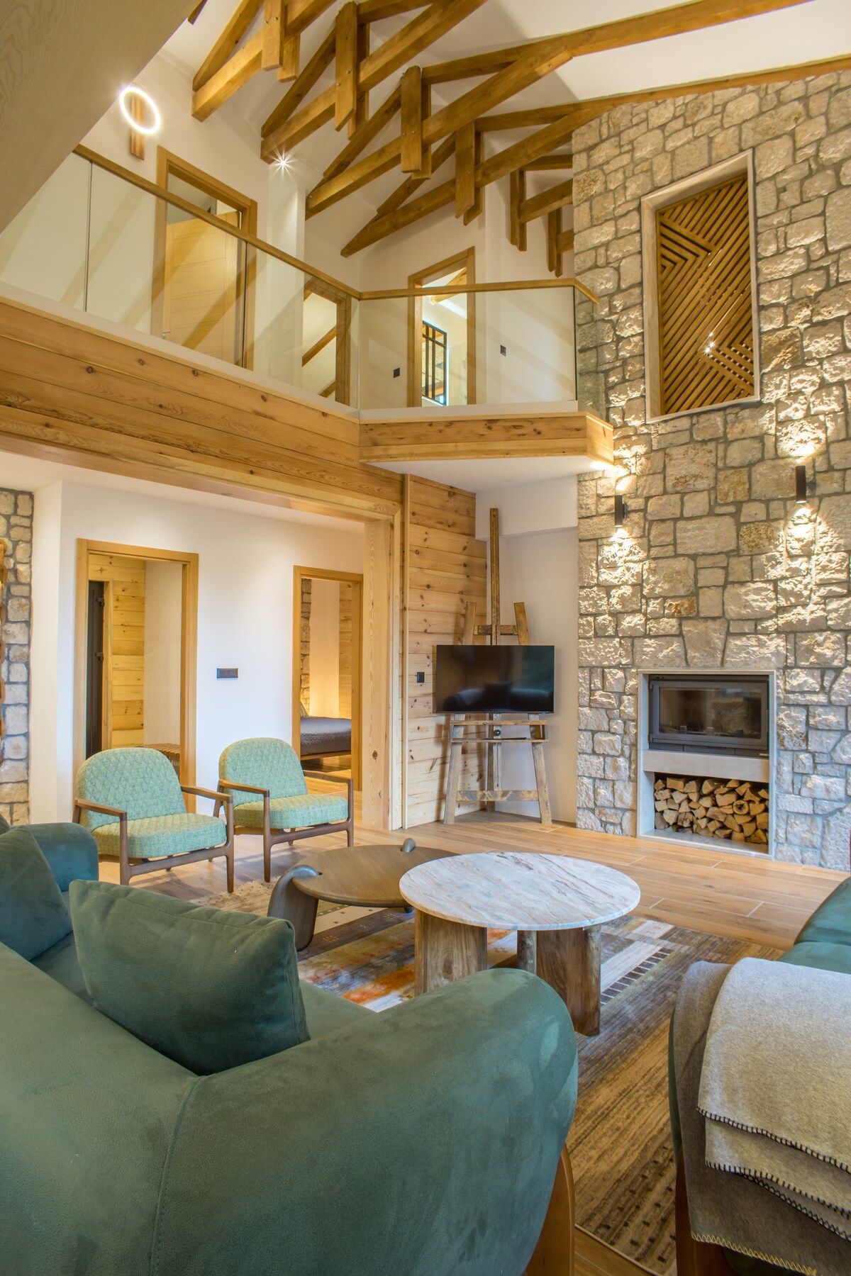 Ubicada en la naturaleza virgen, esta encantadora casa de campo decorada con estilo ofrece unas vistas increíbles de la montaña Durmitor y el lago Riblje. La parte delantera está hecha completamente de vidrio, lo que proporciona una experiencia panorámica inolvidable. La impresionante iluminación realza su notable apariencia. Arriba, la galería cuenta con una acogedora cama francesa, perfectamente situada para despertarse con la impresionante vista de la montaña. Esta casa de campo es el refugio ideal para disfrutar por completo de la belleza natural y la tranquilidad.