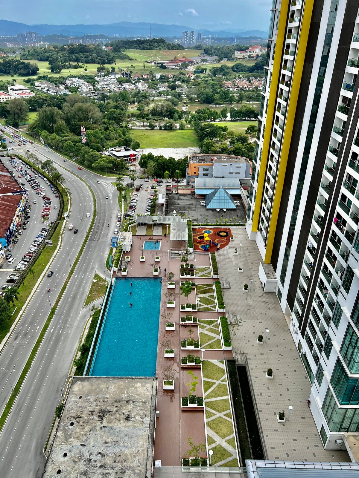 Relax with the whole family at this peaceful place to stay.Many facilities are provided and so many nearby shops you can get for foods and beverages. Easy access for public transport and highway. Clinics and pharmacies are very close to place. You can enjoy swimming pools,gymnasium,playground,bbq area and mini library at this place.Very low density residential that make you stay in peace