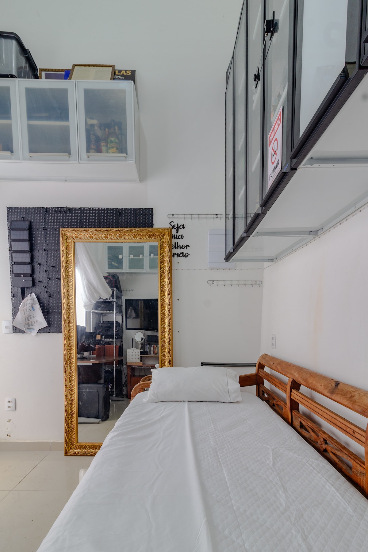 Quarto privativo, Ar e geladeira de 300 litros