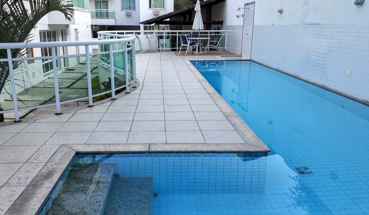 Recanto das Praias, ubicado en la hermosa región oceánica de Niterói/RJ, es un anexo totalmente independiente. Separado de la casa principal por un patio compartido, cuenta con zona de barbacoa, hamaca y ducha exterior, perfecto para relajarse. Los huéspedes también tienen acceso a una cancha de fútbol sala, parque infantil y dos piscinas (para niños y adultos). El apartamento es seguro, vigilado por cámaras y personal, y está cerca de las impresionantes playas de la región, como Itacoatiara y Piratininga.