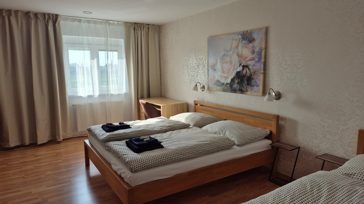 Our modernly furnished apartment is located directly in the prestigious PROMENÁDA complex on the river bank. You can enjoy your morning coffee with an iconic view of the Nitra Castle and the historical center is only a few minutes walk away. An ideal choice for couples or business travelers. Everything under one roof - restaurants, fashion and groceries. Fully equipped interior. Your car is safe in our covered garage. Important: You can pick up the keys at our reception (approx. 1km/2min by car)