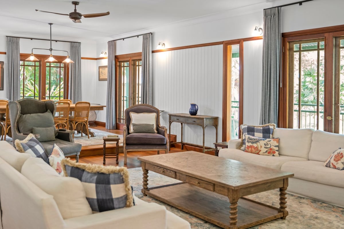 Rangeview Cottage es una hermosa casa de campo tradicional de Queensland de 100 años que se ha reubicado en un rincón tranquilo de nuestra propiedad residencial rural de 2 acres. Ubicada en sus propios jardines, rodeada de árboles establecidos, plantaciones exuberantes y con impresionantes vistas al monte Cooroy. La casa de campo ha sido completamente renovada y cuidadosamente curada con una mezcla ecléctica de piezas vintage y de diseño. El cargo base es para 2 huéspedes. Suplemento por huéspedes adicionales. No se admiten bebés ni niños menores de 12 años.