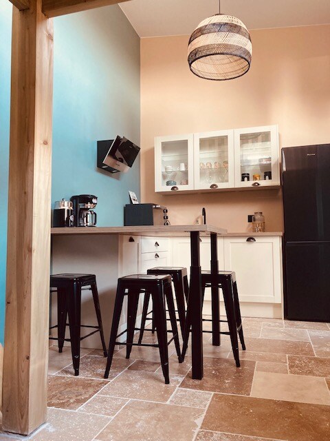Envie d'un séjour romantique et reposant au coeur de la campagne, venez découvrir le pré en bulles ! Un espace ouvert, chaleureux comprenant : chambre, salon, cuisine, salle de bain, wc, SPA et Sauna. Mais aussi une terrasse avec vue sur le village, et la campagne environnante. Possibilité petit déjeuner (18€/2)