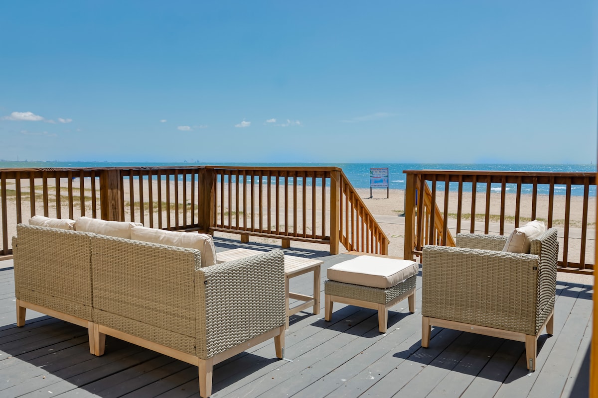 This is a beach front property on North Beach. Sunrise views. We are the only beach house on the beach. This is close proximity (5 min drive) to the Texas State Aquarium & Lexington Museum or use the beach walk from outside the home all the way down as well. Fishing area & play area is walking distance. Great place to enjoy the sun and the beach ! This house is clean and ready to enjoy your vacation. We have another house across the street to accommodate more guests up to 8 more, message me.